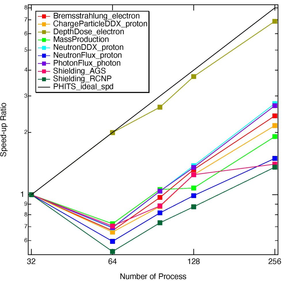 FOCUSスパコンでの PHITS ベンチマークを財団にて実施しました。(2022/09)