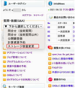 | ストレージ容量変更 | ストレージ容量の変更依頼を行う際に利用する。 | 『2.3.ストレージ容量の変更申請』 |