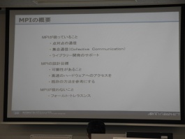 今年度第1回目となる “「京」を中核とするHPCI活用を見据えたチューニング講習会初級MPI編” を6月9日(火)15時から17時半の間で計算科学センタービル2階実習室にて行いました。