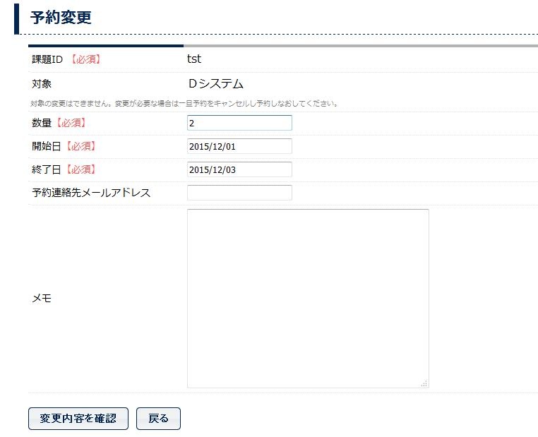 予約変更画面が表示されますので、内容を変更します。