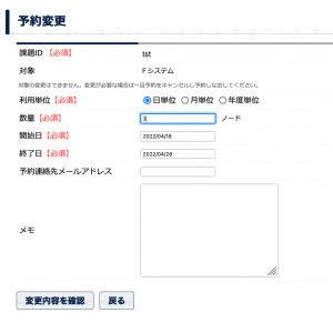 ・容量を追加する場合は「新規予約」として申請してください。