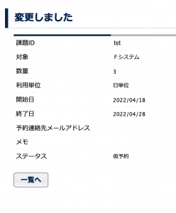 予約の一覧に変更した内容が反映されます。